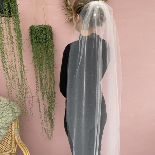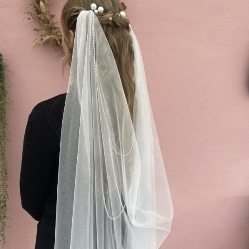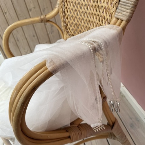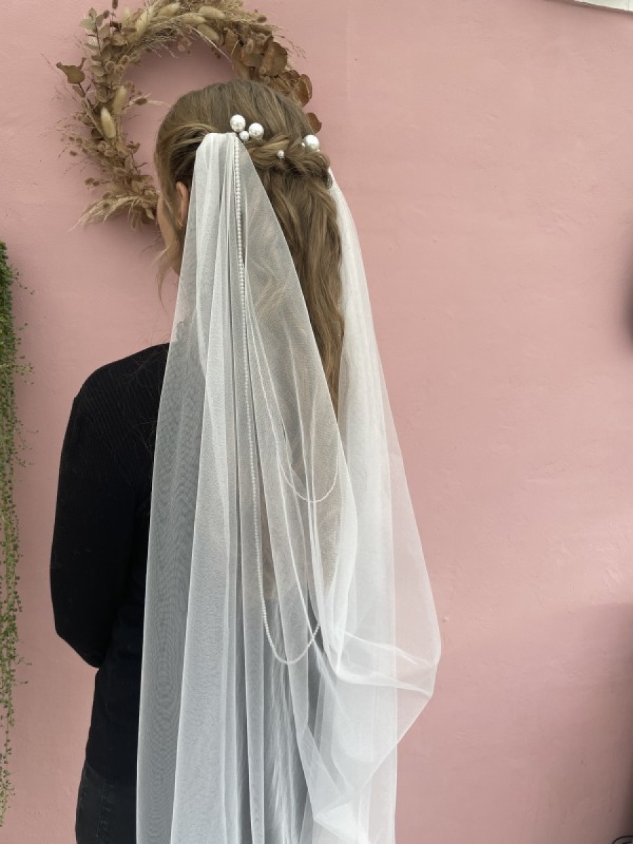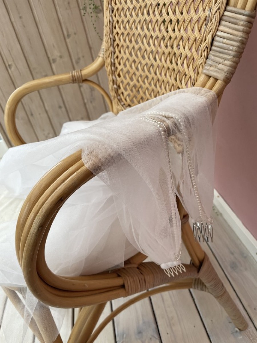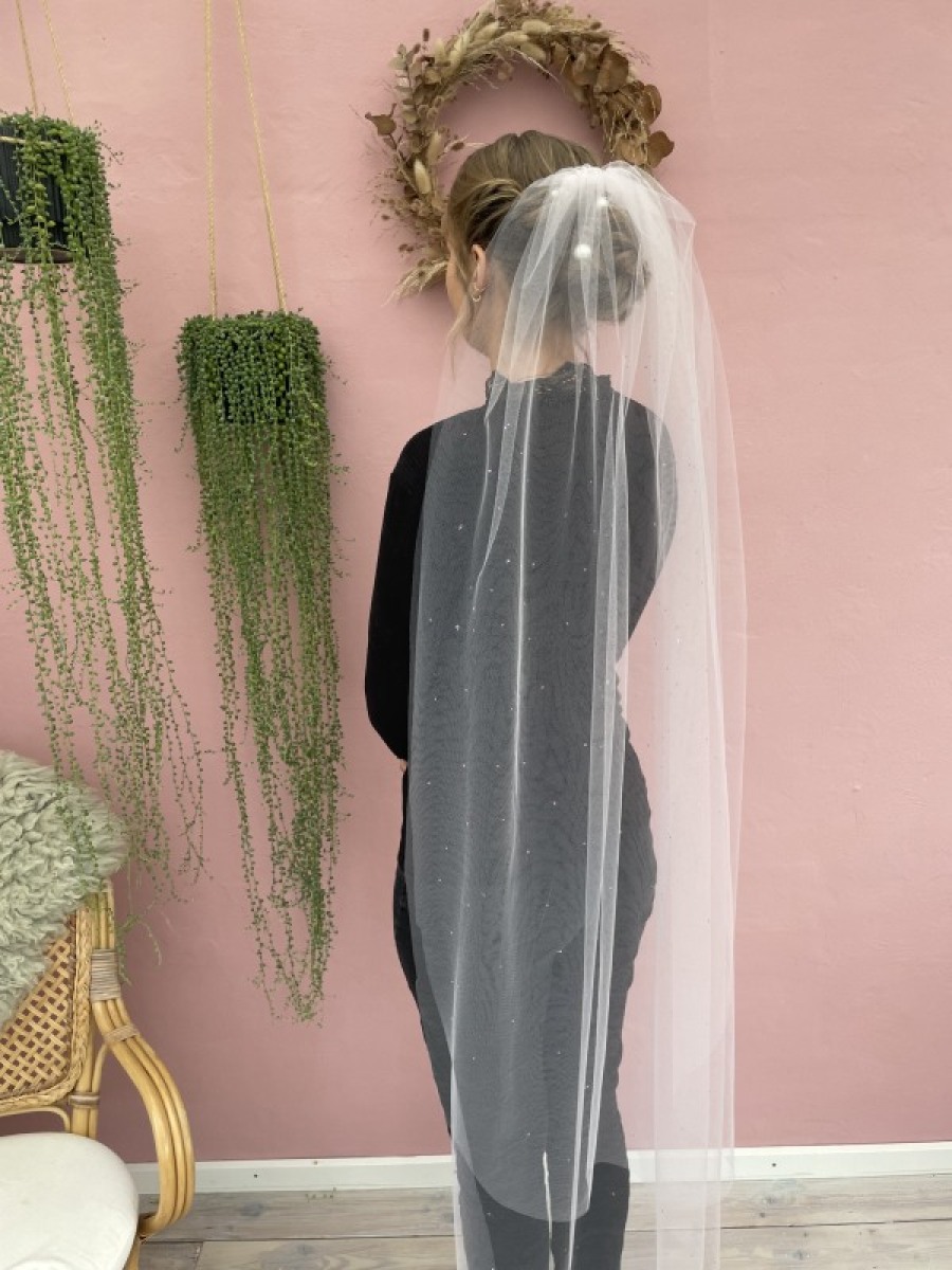 Prisen på dit slør afhænger af længde og design, her har du en oversigt over priserne, Hvilket giver dig fuld gennemsigtighed, overhvad dit personlige brudeslør kan komme til at koste. Design af slør 295 kr.