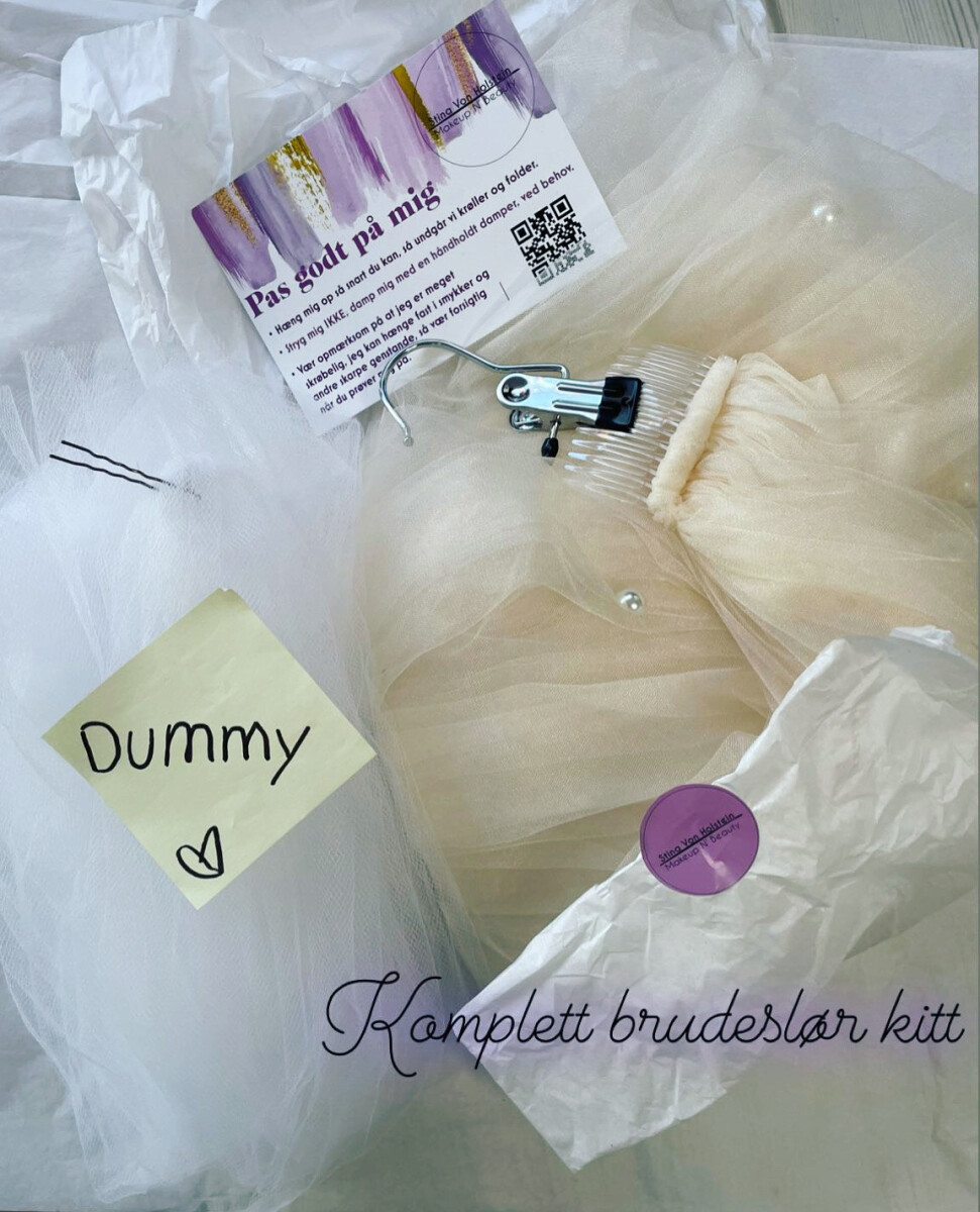 Derudover får du også en krog til at hænge sløret på, så det ikke krøller, og en guide som beskriver hvordan du bedst muligt passer på dit slør.