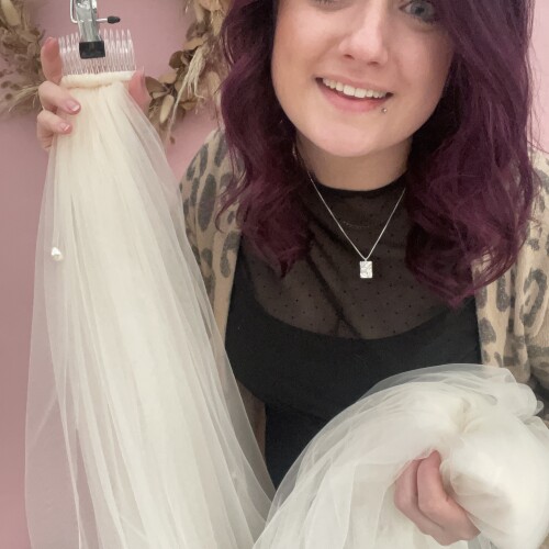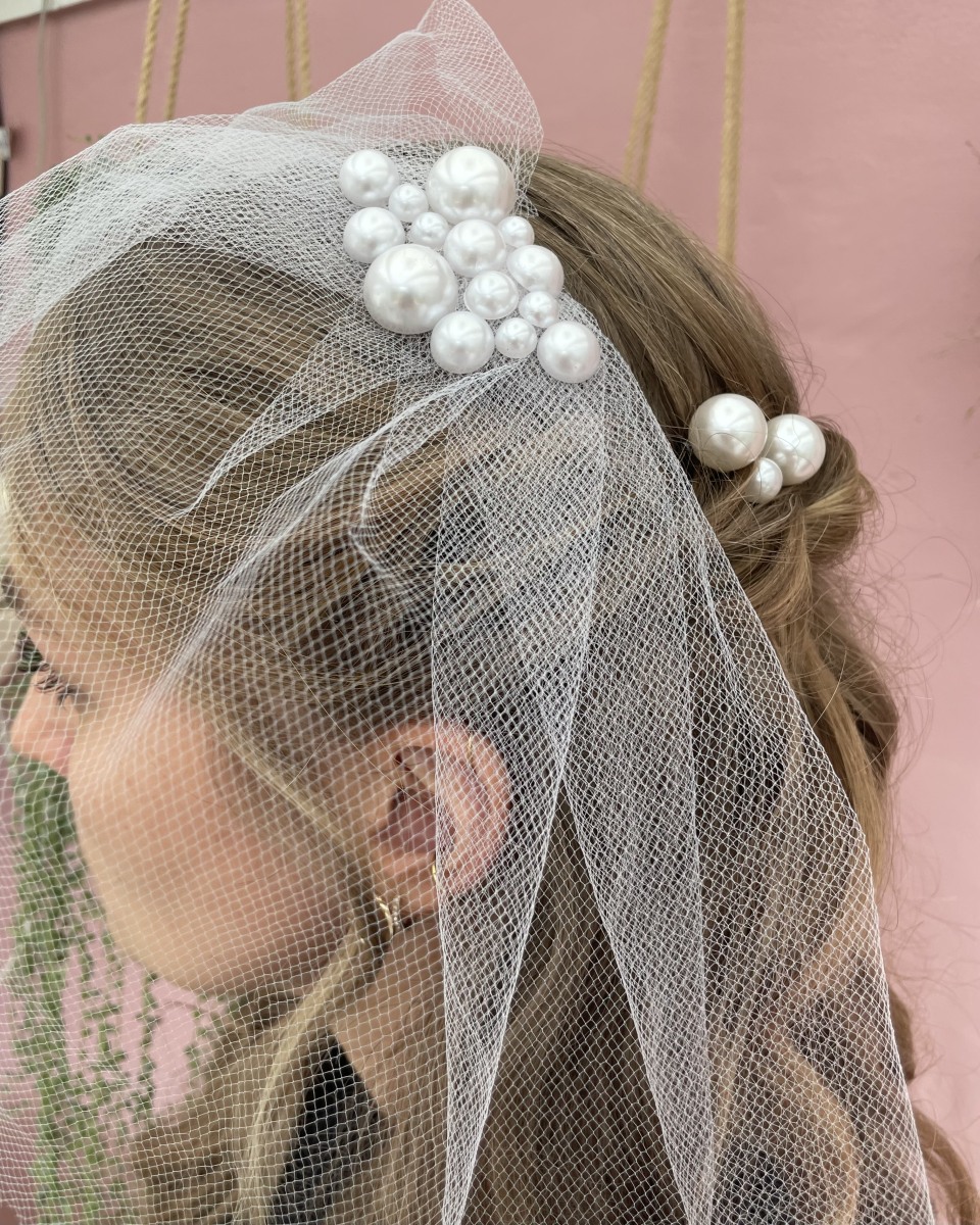 Et håndsyet brudeslør er prikken over i’et og i mine øjne lige så vigtigt som kjolen. Og hvornår får du ellers muligheden får at have et smukt slør på? Måske har du et gammelt arvestykke, vi skal have flettet ind; perler fra en perlekæde, du vil have syet på; en klemme, der betyder noget for dig; eller måske du har blonden fra en dåbskjole eller din bedstemors slør? Så hjælper jeg dig med at få det præsenteret flot i dit brudeslør!